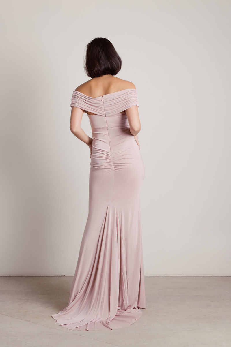 Break hearts in the Fall For Me Ruched Bodycon Mermaid Maxi Dress in Burgundy. This off-the-shoulder bodycon pencil dress features ruched detailing and a back zipper closure. Pair with high heels for a flirty, romantic look for a fancy evening out.