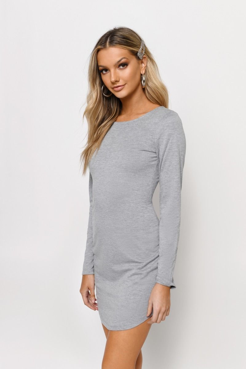 Head out in The Outcast Backless Bodycon Mini Dress in Heather Grey! This sassy stretch-knit dress features long sleeves and a deep V cutout that reveals your back in a bold, daring way. With adjustable spaghetti straps and a figure-hugging silhouette, it’s perfect for your next night out. Style it with strappy heels and statement accessories for a look that’s guaranteed to make waves. Own your night with this unforgettable dress!